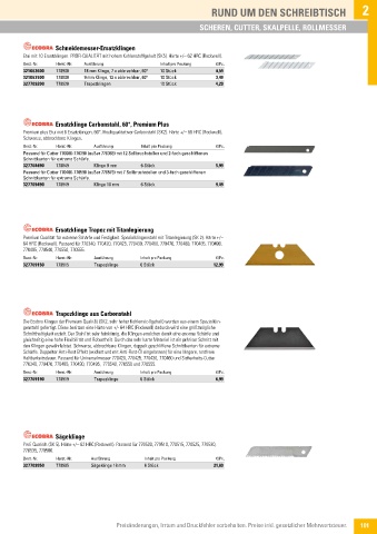 Premium plus Etui mit 6 Ersatzklingen, 60°� Hochqualitativer Carbonstahl (SK2)� Härte +/– 66 HRC (Rockwell)�