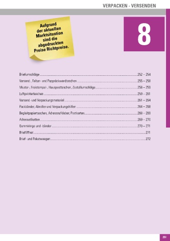 Versand- und Verpackungsmaterial ��������������������������������������������������������������������������������������������261 – 264