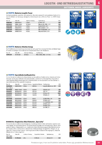 Best.-Nr. Herst.-Nr. Inhalt pro Packung Kapazität der Batterie Typ/Spannung €/St.