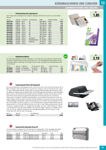 Best.-Nr. Herst.-Nr. Folienstärke Für Papierformat Größe Inhalt pro Packung €/Pc.