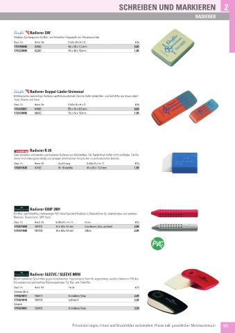 Zum schnellen, schonenden und sauberen Radieren von Bleistrichen� Der Radierstaub haftet nicht am Papier� Die Ra-