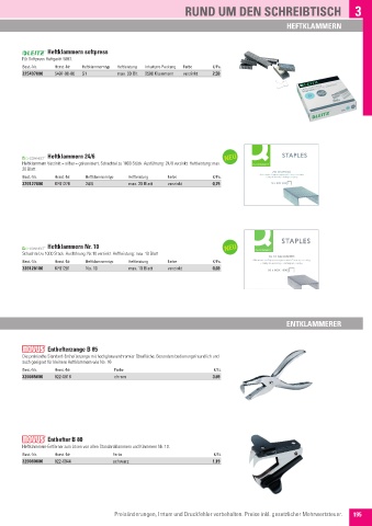 Best.-Nr. Herst.-Nr. Heftklammerntyp Heftleistung Inhalt pro Packung Farbe €/Pa.