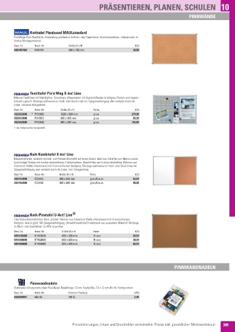 Oberflächenbeschaffenheit: Kork, pinnbar� Rahmen aus Aluminium (Farbe silbereloxiert) mit Kunststoffecken