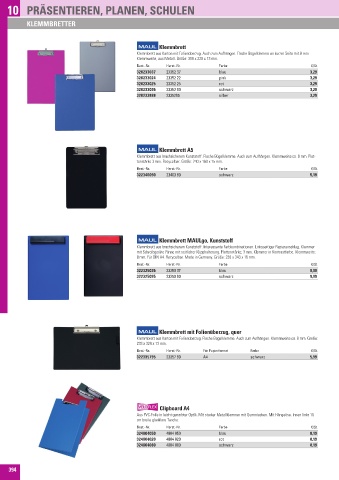 mit Schreibgeräte-Rinne mit seitlicher Klipphalterung� Plattenstärke: 3 mm� Klemmer in Kontrastfarbe� Klemmweite: