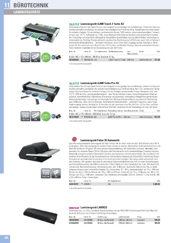 Minuten, bei 125 µ = 4 Minuten� Temperatur: fest� Maximale Laminierdicke: 0,25 mm� Gewicht: 11,6 kg� Format: 580