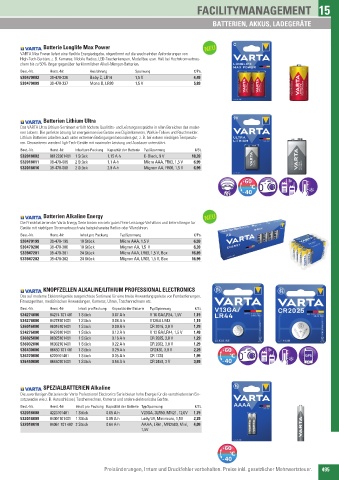 Best.-Nr. Herst.-Nr. Inhalt pro Packung Kapazität der Batterie Typ/Spannung €/St.