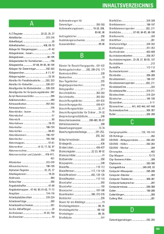 Aktenmappen���������������������������������������57-61 Bindegerät������������������������������������������������436 CD/DVD - Hüllen ������������������������������292-293