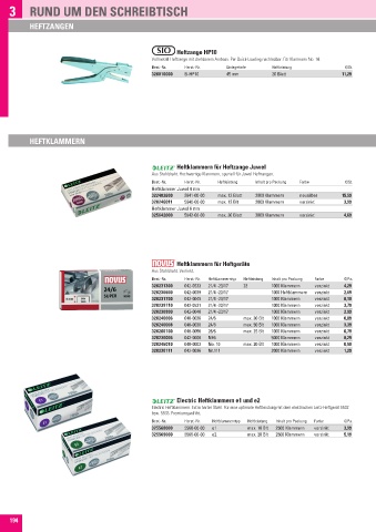 Best.-Nr. Herst.-Nr. Heftklammerntyp Heftleistung Inhalt pro Packung Farbe €/Pa.