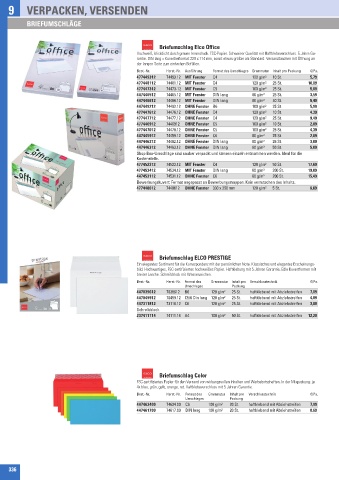 Best.-Nr. Herst.-Nr. Ausführung Format des Umschlages Grammatur Inhalt pro Packung €/Pa.
